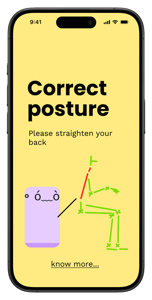 Students spend hours hunched over laptops, developing musculoskeletal pain and repetitive strain injuries. Existing solutions either nag users with aggressive reminders or require wearable devices people forget to use. The problem isn't lack of awareness—students know poor posture is harmful. The problem is making correction feel natural within their workflow.