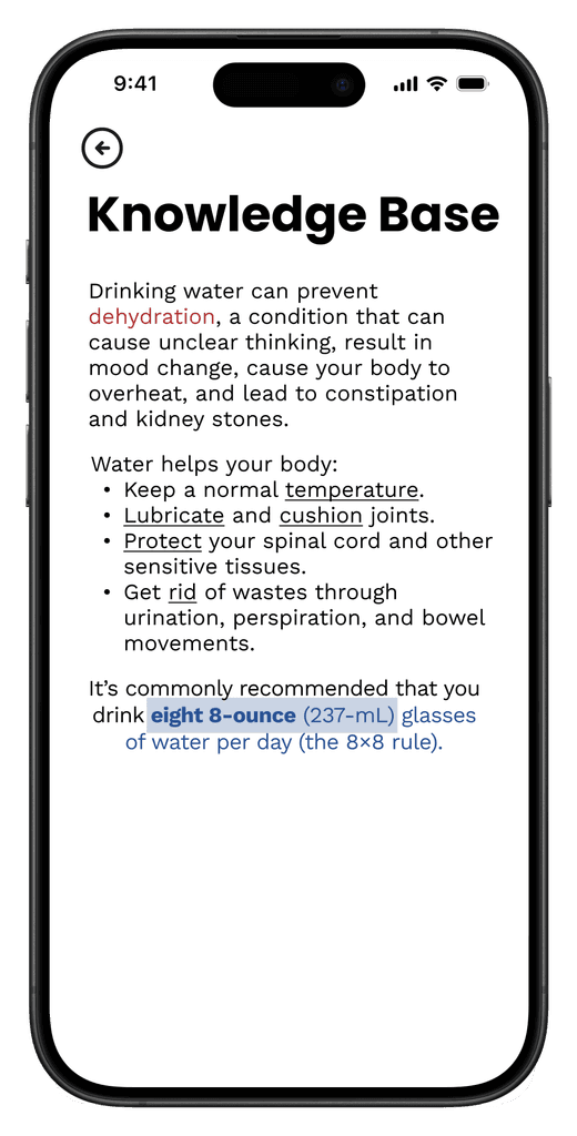 Knowledge base prompt: "Learn why hydration matters for focus"