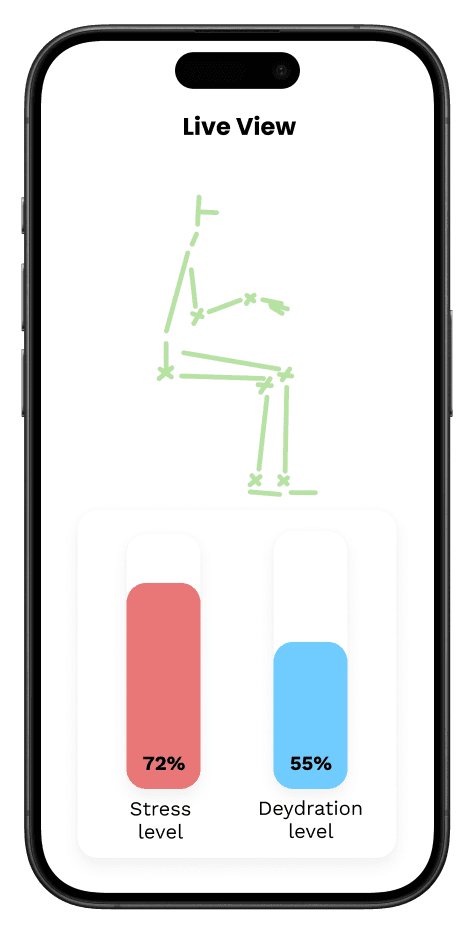 Live monitoring: Real-time posture, stress, and hydration indicators