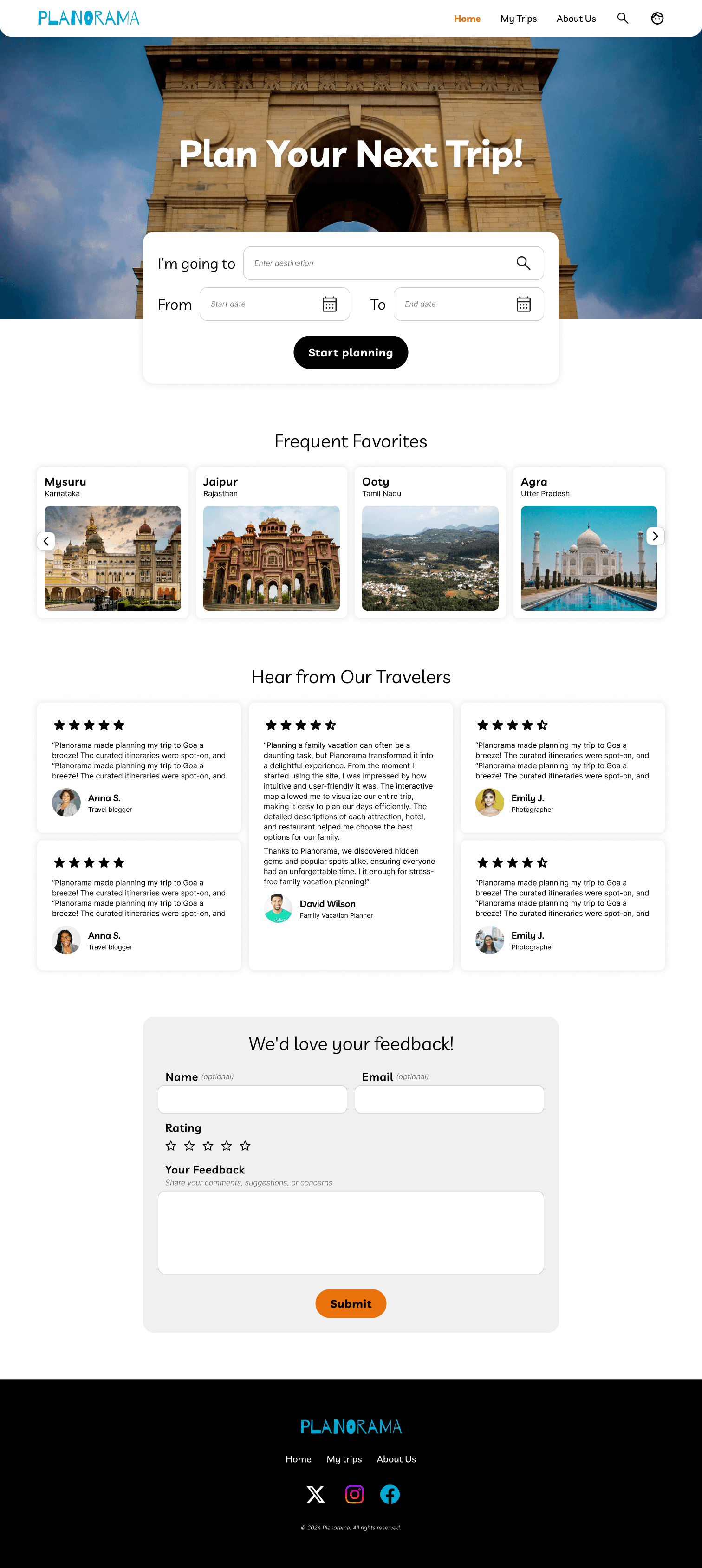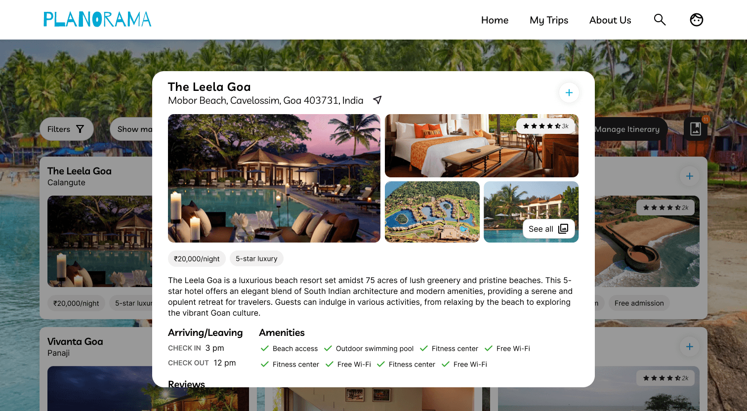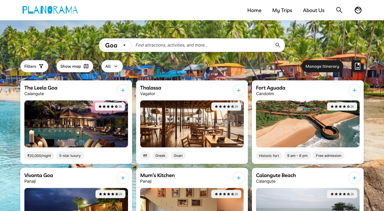 Itinerary planning page