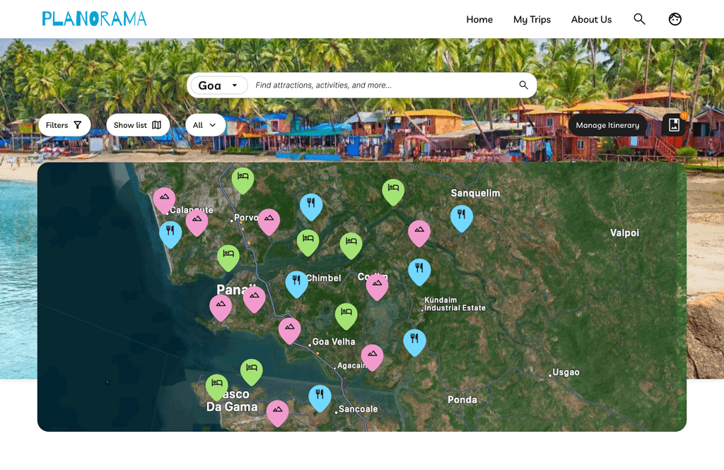 Travel planning is inherently complex. Users need to search destinations, organize activities by day, manage timing and logistics, and visualize their route.