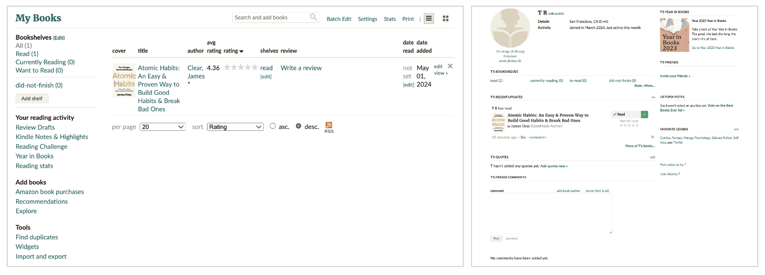 Assessing the effectiveness of Goodreads' features in helping with the tracking, rating, and organization of books that users have already read.