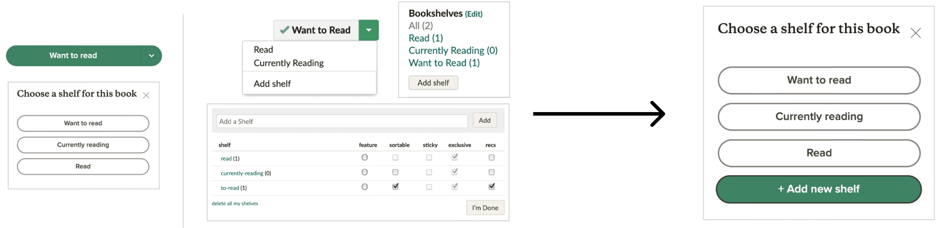 It is unclear which organizational structure for the “Want to Read” button would best suit users’ needs. Research should explore different layouts or default orders to improve usability.