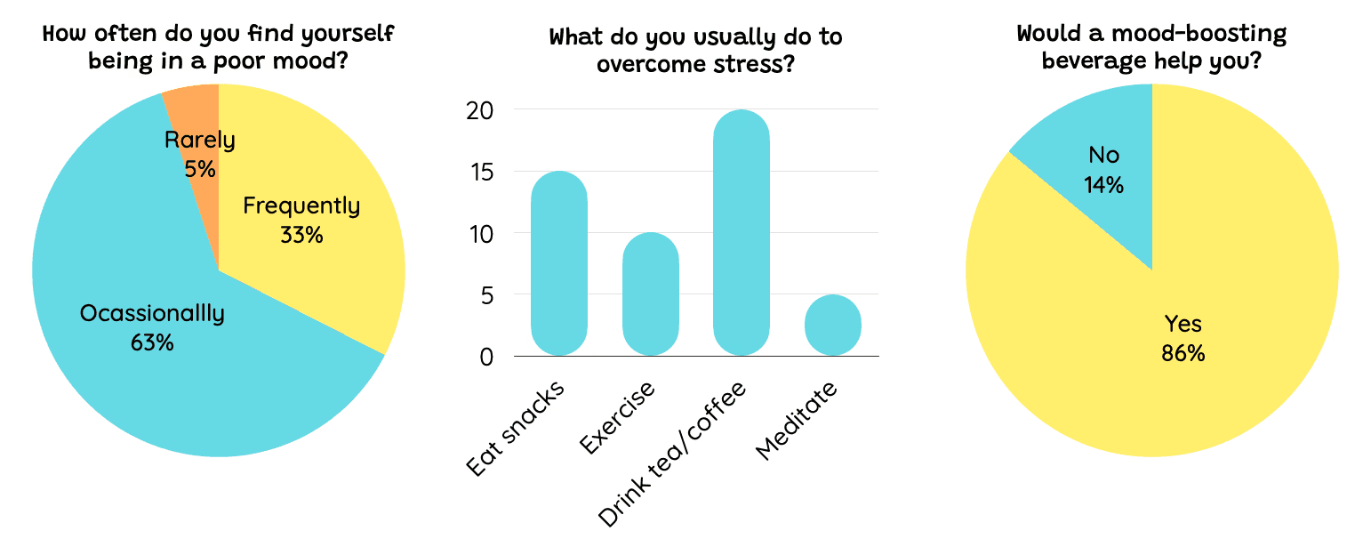How are the most common emotional states distributed among the target audience? Survey 25 busy individuals to understand the pattern of emotions they feel daily. This will help tailor the offerings of the personalized beverage vending machine to effectively address and uplift the dominant moods and emotional needs of the users.