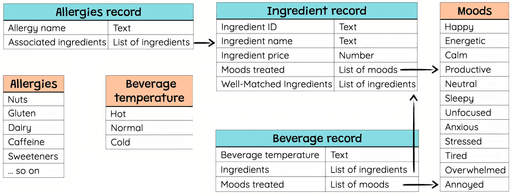 Beverage recipe consists of the ingredients and its quantity used to make the beverage Ingredients are fruits, herbs, spices, tea leaves, coffee, sweeteners and/or milk/ milk alternatives provided by suppliers.