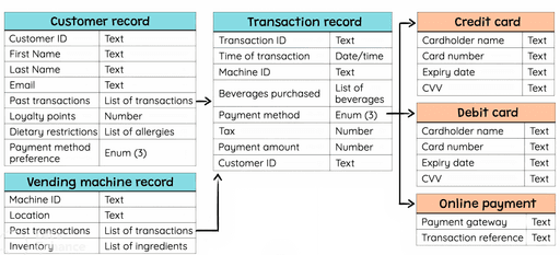 Main objects in the vending machine ecosystem