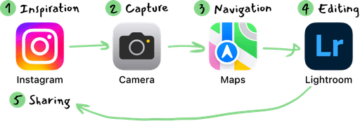 Photography enthusiasts juggle multiple apps during their creative process which kills creative momentum and wastes time when the perfect lighting is fleeting.